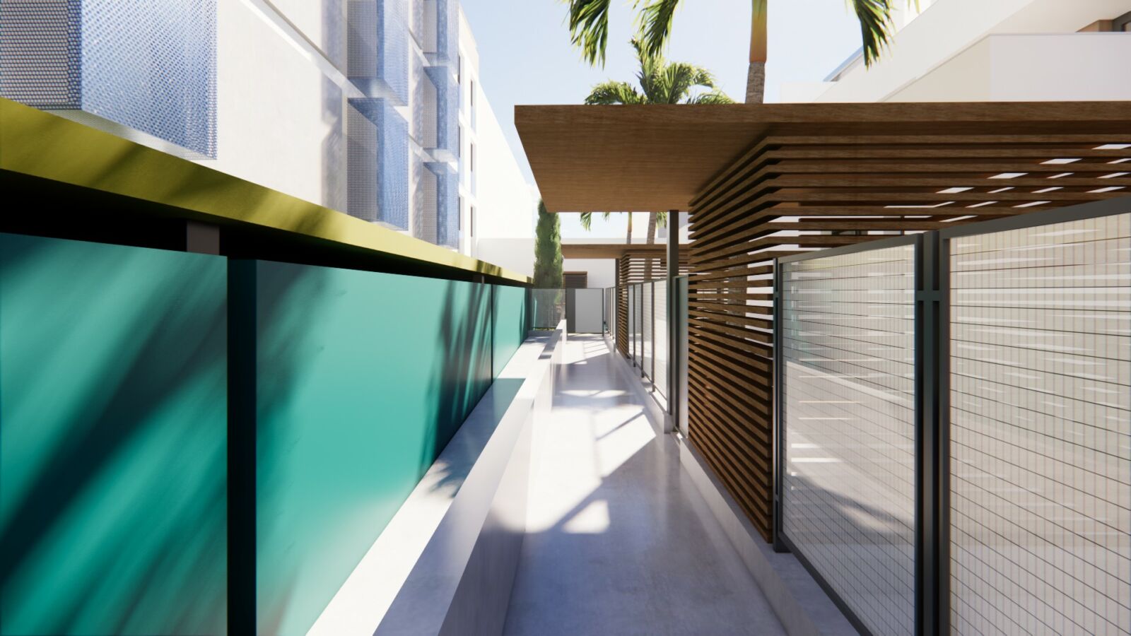 Facilities include, among other things, an elevator, its own underground parking space with storage, a partly covered terrace, and a communal rooftop terrace with a swimming pool. The complex was designed by the renowned ZORG architects Murcia and is characterized by a modern look, high-quality finishing and the use of sustainable materials.